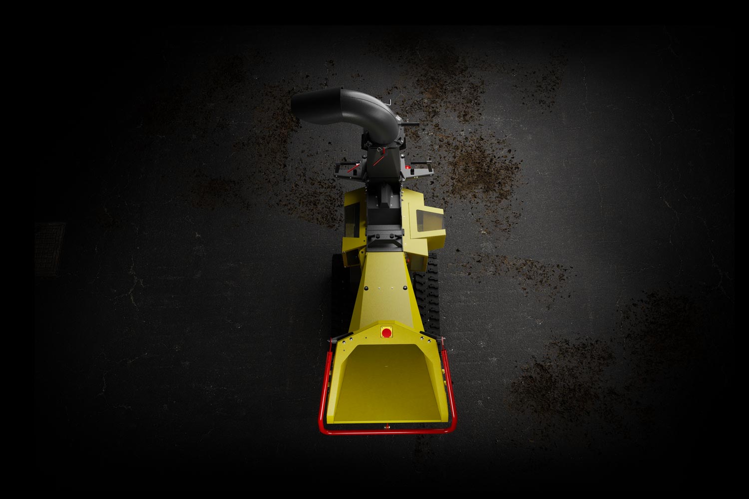 *A single engine to: drive track and chipper, to achieve stability, motion and driving sensitivity, low center of gravity, lower fuel consumption and reduced maintenance.