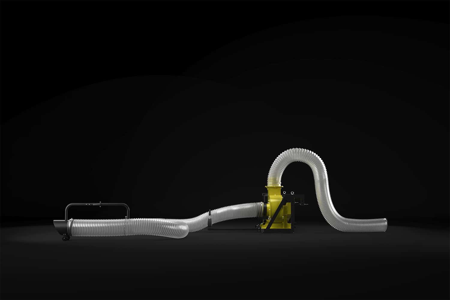 L’abbinata tra potenza di aspirazione e robustezza meccanica è il punto di forza di VDA-B. Il tubo di aspirazione in poliuretano con un diametro di 200 mm e 5 metri di lunghezza consente di lavorare con raggio operativo ampio, mantenendo leggerezza e resistenza all’abrasione. La trasmissione a doppia cinghia trasferisce in modo affidabile la potenza alla turbina, limitando gli slittamenti e l’usura nel tempo. La camicia di rinforzo della girante protegge la turbina dall’impatto del materiale, mentre il sostegno per il tubo aspiratore aiuta l’operatore a gestire meglio il peso durante le fasi di carico. Il microinterruttore di sicurezza interrompe il funzionamento in caso di apertura della macchina, contribuendo a lavorare in condizioni più controllate.